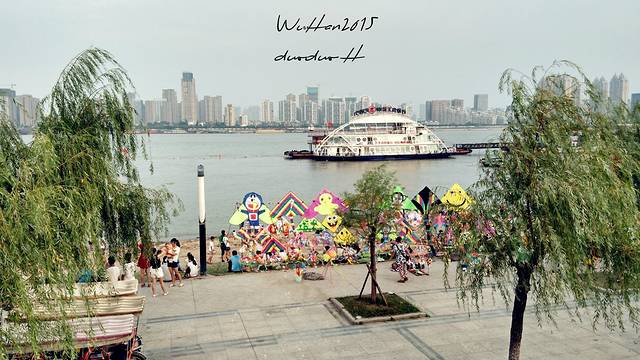 江滩公园很大而且是免费的!就在江汉步行街后面~走出商圈再顺着马路走五分钟就到。公园很热闹游泳的,吹风的,放风筝的,锻炼身体的很多人。江边很凉快~坐在江边吹吹风很舒服。公园沿江建造的是长条形状的~公园有好几个小码头,如果在这附近住,晚上可以来登船游江看夜景~晚上坐完船欣赏完江景后,沿着公园吹着江风,一边聊天一边走回来~如果累了也可以凭船票坐电瓶车到公园门口。武汉人民对这个公园很满意呢!我们在江边坐了半个下午~看看船,聊聊天,玩玩水~特别舒服~