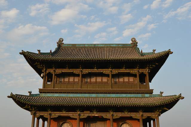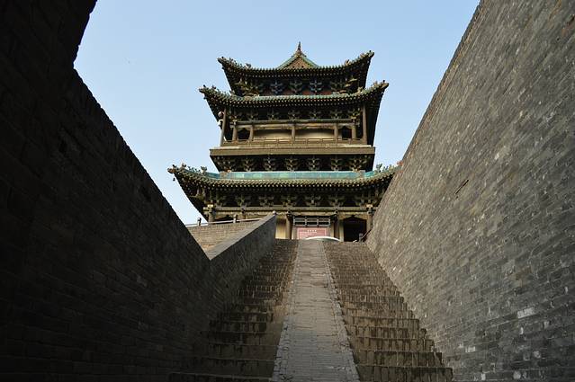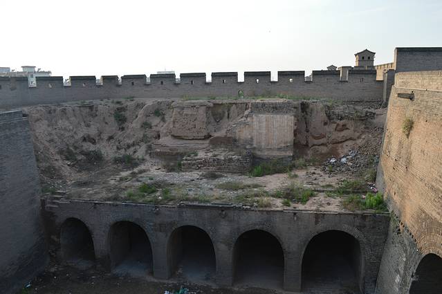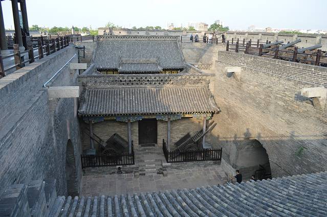 平遥市楼,楼下的中央路面覆盖着当年的“金井”