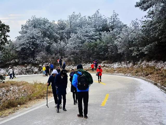 连日来,九仙山因为一组白雪皑皑,宛如仙境的雾凇美图给刷屏了。于是本人就在周六的晚上十一点,由四十几个人组团一起包车从我们晋江出发,直奔九仙山。计划隔天六点多钟开始徒步上山。尽管出发前得知景区已发布禁止机动车上山的通告,并且发布关闭景区停止售票的消息。但这并未阻挡游客赏雪的热情,而我们也已经做了最坏的打算,那就是不行也得找个后门溜进去。