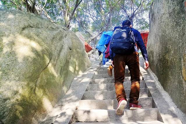 愉快的登山之路,开始了,由于是节假日在登山的一路山遇到的游客不是很多,要再往山上走一段路才会觉得拥挤。