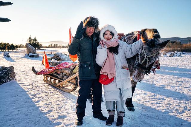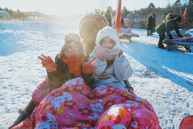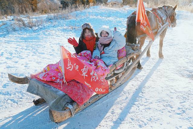 两个人一辆车~会有一位大叔“ yu yu yu ”地在旁边驾马~车上还还贴心的给放了毯子