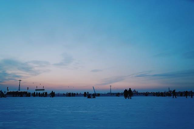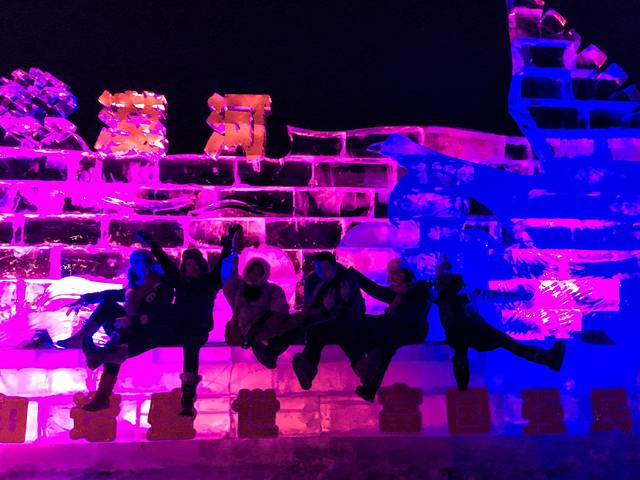 一路上看着窗外的景色,哈尔滨并没有我想象中的银装素裹,听师傅说都被扫光了,真是遗憾。但路边偶尔冒出来的一两个冰雕真是冰城的一大特色。因为是冬天,才五点天就黑了,等车开到了市区正值下班高峰期,堵了好一会儿我们才到达我们的住处——哈哈国际青年旅舍