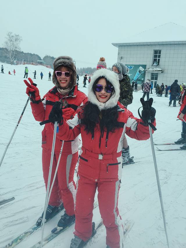 一进滑雪场就会有人很热情地接待你,和你聊天帮你租柜子组服装。一开始还以为是因为我可爱,后来才意识到他们都是滑雪场的教练,希望你请他们教你滑雪,赶也赶不走,一直把你陪伴到滑雪场,并不停地劝说你请教练,一个小时240元。我和乐乐宁死不屈~毕竟我几年前玩过一次还是有些经验,乐乐初生牛犊不怕虎,没想到还滑的挺好~静静胆子小,最后还是请了教练。但一小时下来也才学会不摔倒。而我和乐乐已经会转弯了哈哈哈~有些教练看说不动你,就会故意把你往下推,这个真的很生气。还好一直跟着我的教练人很好,虽然我不请他,还是一路保护我跟我唠嗑并偷偷传授了一些滑雪技巧~~