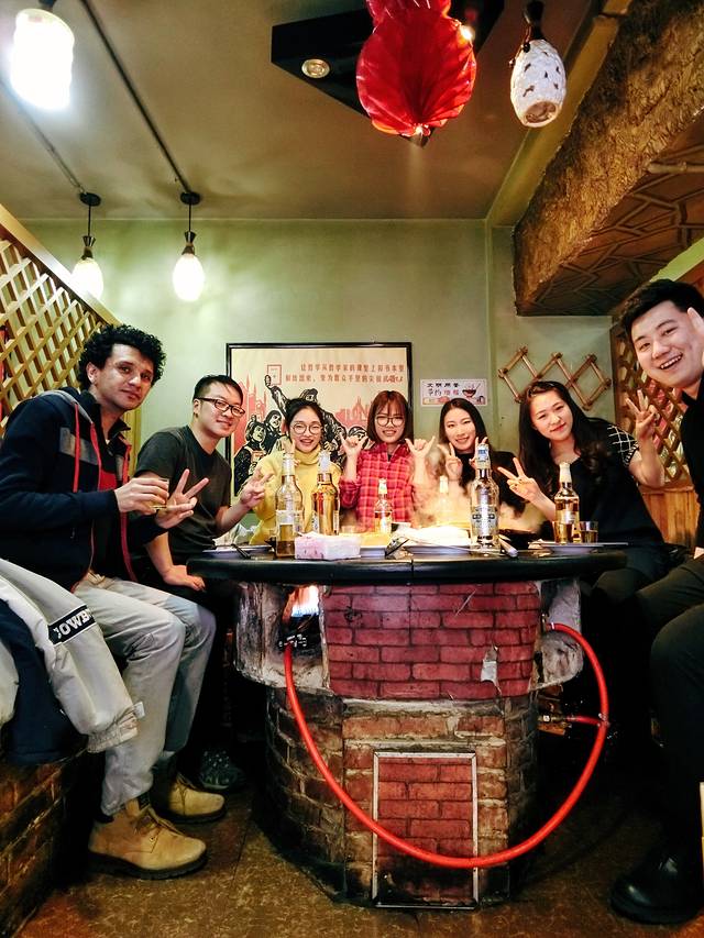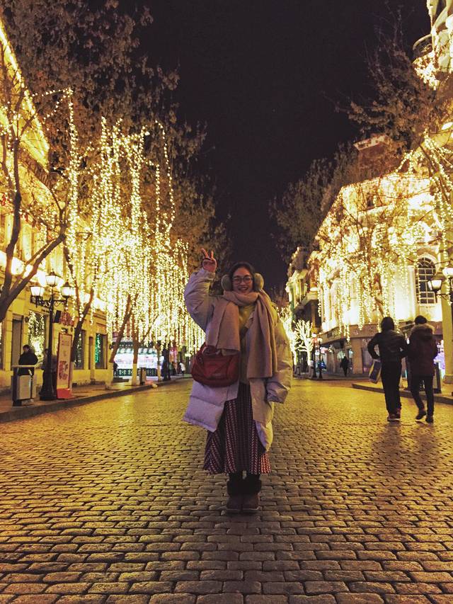 北方小伙的酒量简直好到离谱,他告诉我们北方人喝酒叫踩空箱,因为一人一喝就是一箱。我这种喝了一杯就上脸的只能甘拜下风。我们边吃边喝,为了炒热气氛,吃饱后我们直接玩起了游戏,输了就要喝喝喝~墨西哥的小熙在语言交流上吃了大亏频频出错屡屡让我们笑的不能自已,庄主的运气也特别不好,中了好几次大奖喝了很多,我们一起玩到饭店打烊了才结束。但果然在北方的冬天,喝的再多一走出去风一吹就清醒了。趁着酒劲儿我们几个还是决定步行回家,顺带路过中央大街,好好逛一逛