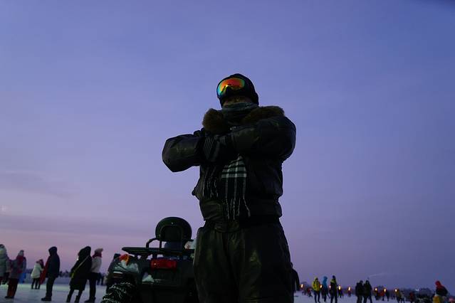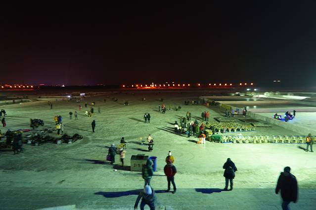 傍晚的松花江上人还是非常的多~一大堆冰上项目可以玩耍~