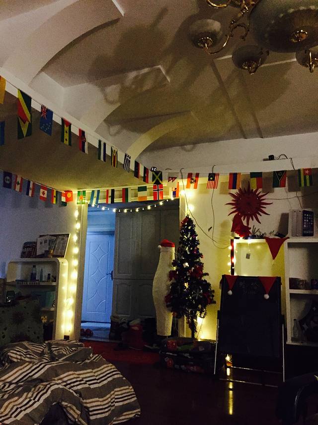 阿姨很热情的招呼我们进去,领我们去找自己的床,房间是上下铺的8个床位,另外还临时加了一张小床。因为我们三个必须有一个人要睡小床,公平起见,我们就用黑白配来决定,不幸的是,我中招了。。只能接受命运的安排。阿姨跟我们说被套床单每天都会清洗消毒,所以必须让我们自己来整理,欣然接受的我们一起说说笑笑的整理床铺,惹得阿姨一直笑着说我们是有意思的小姑娘。在这过程中一直听到在外面客厅的庄主打着各种电话,时而英语时而国语地处理着繁杂之事,我们都暗暗赞叹他完美的口语并偷偷开始练起了听力。