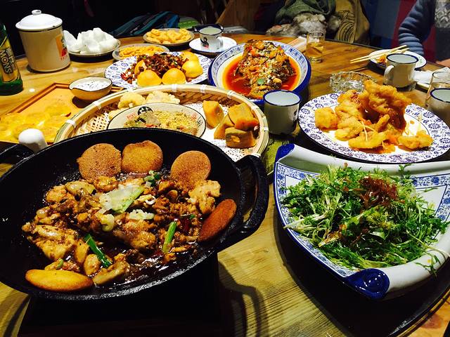 聊着聊着就来到了一家正宗的东北铁锅炖菜馆