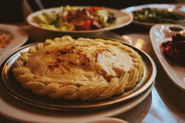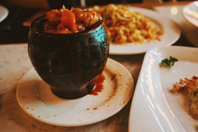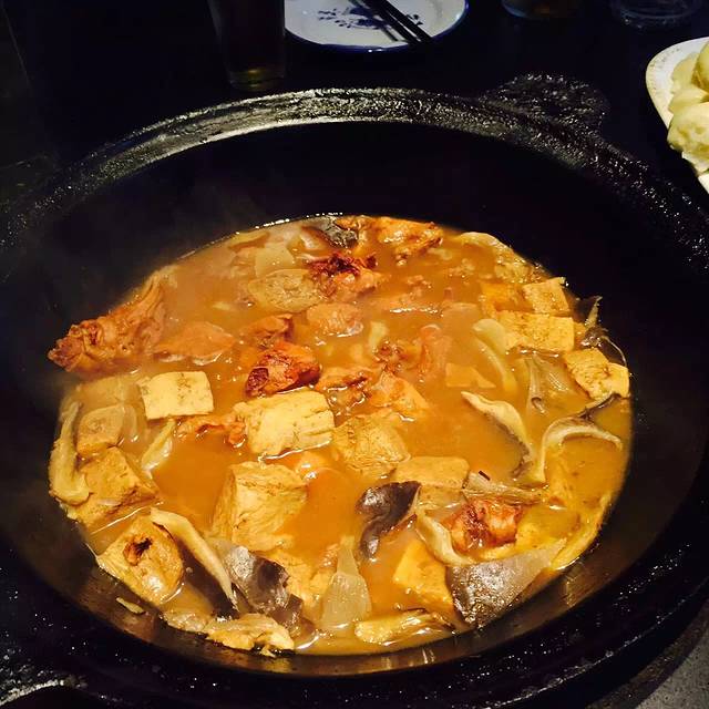 等了半个多小时终于轮到我们,照着推荐的点了 黑拉皮,干过三黄鸡,金牌锅烙还有一个豆腐煲