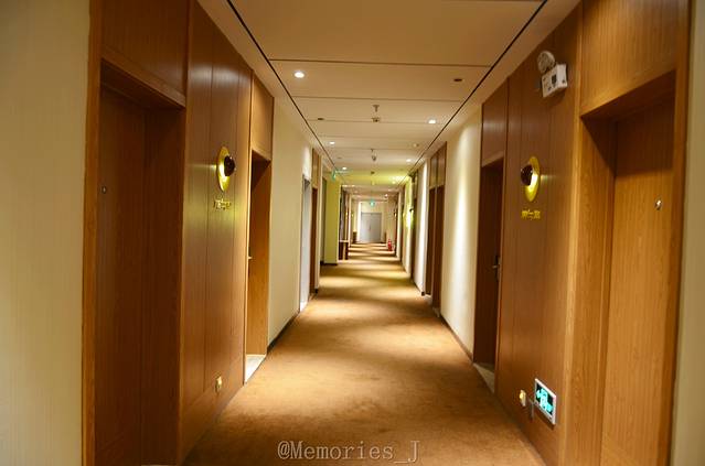 暖色调的走廊灯光在这个寂静的晚上给我带来一丝温暖。灯光比较明亮,一眼即可环顾四周,即使一个女生出行也没有那么害怕。(之前某连锁集团事件确实给独自出行的我留下一点阴影,出门在外,还需谨慎。)
