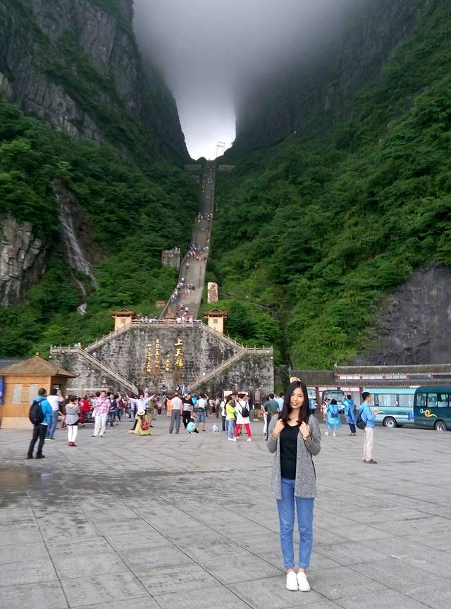 天门山森林公园网上预订门票,出游当天在自助取票机取票,再到索道上山排队处(选择客栈代订价格也差不多还省了自己取票的时间)。天门山游览路线分A&B线,建议选择A线,因为下山比上山轻松,B线坐环保车在天门洞天梯脚下下车要爬999级阶梯上去,再乘穿山自动扶梯上山,A线则相反。A线索道上山由西线往东线走,绕天门山顶一圈,再乘穿山自动扶梯下天门洞。张家界旅游一定要关注出游的天气,下雨爬山不方便,且雾太大看不到风景。
