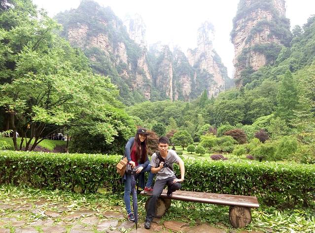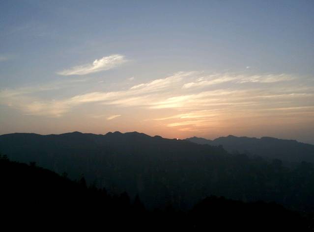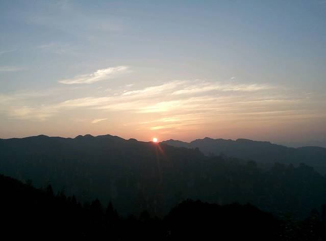 看日出回来,收拾行李托运下山。在2师兄家吃了早餐,坐环保车去了神堂湾,再去天子山游览贺龙公园,仙女献花,天子阁,还有去海拔最高的M麦当劳吃一个汉堡包,哈哈。。