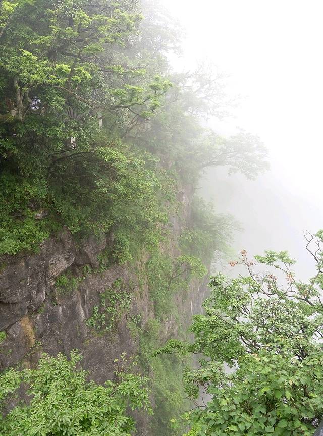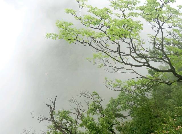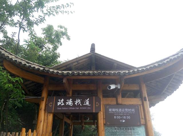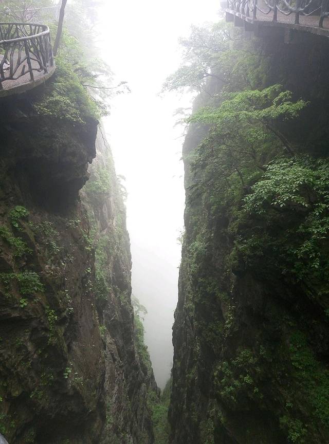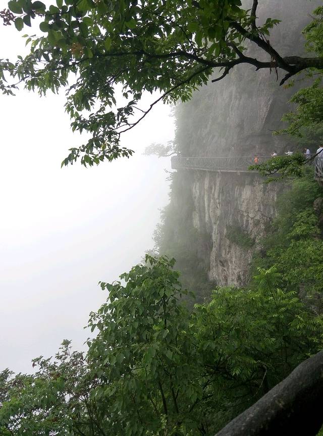 鬼谷栈道全线都立于万丈悬崖的中间,可惜还是雾太大看不清周边景色。