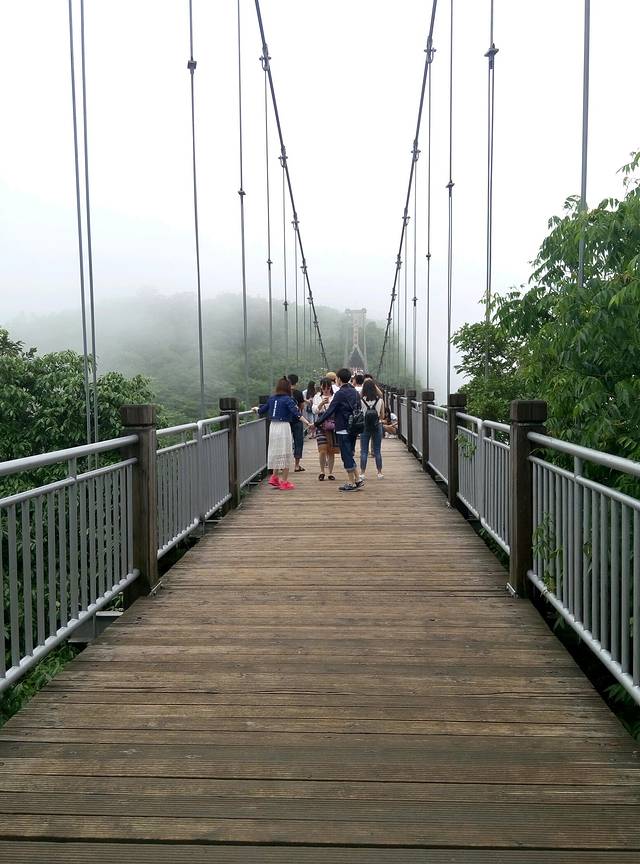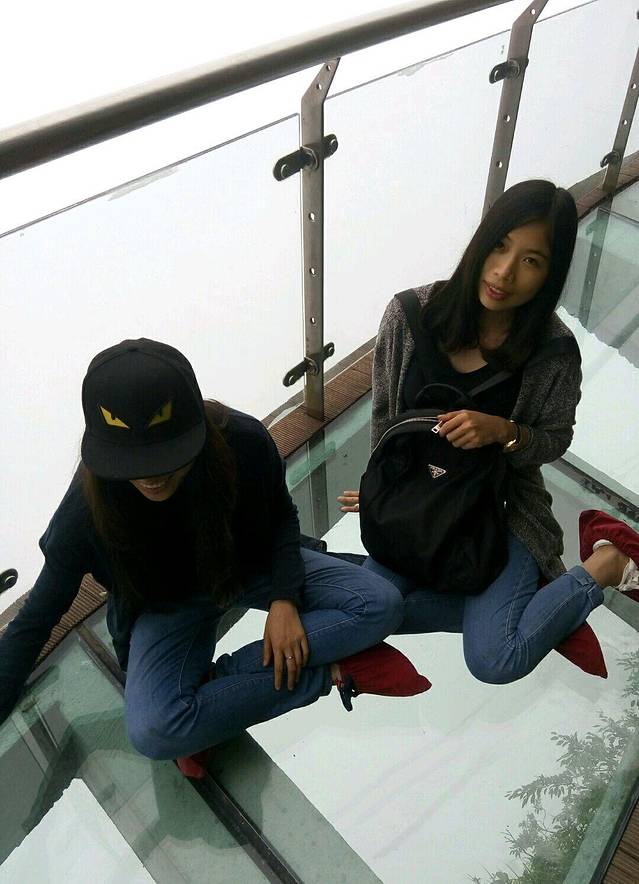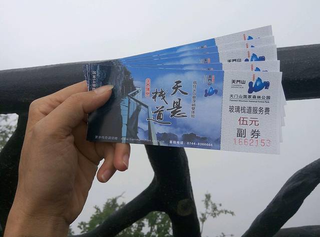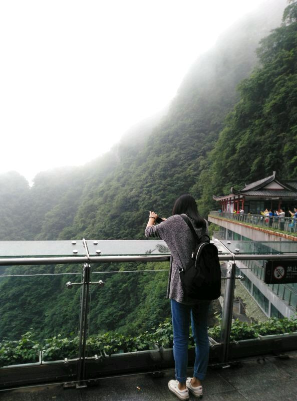 天门山玻璃栈道东西线各一条,每次5元服务费,进去有专门的鞋套穿上。所以不要再外面买鞋套,上来也不适用。由于雾太大了,能见度甚低,看不见脚下1400+m的深渊,显得一点都不惊心动魄,有点失望55555555
