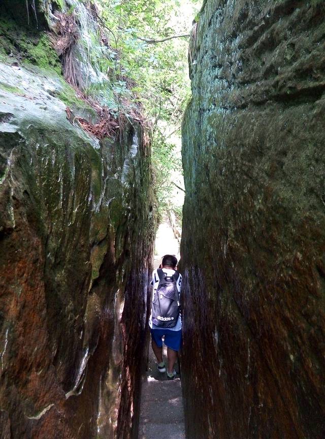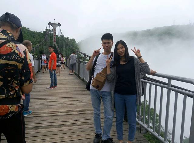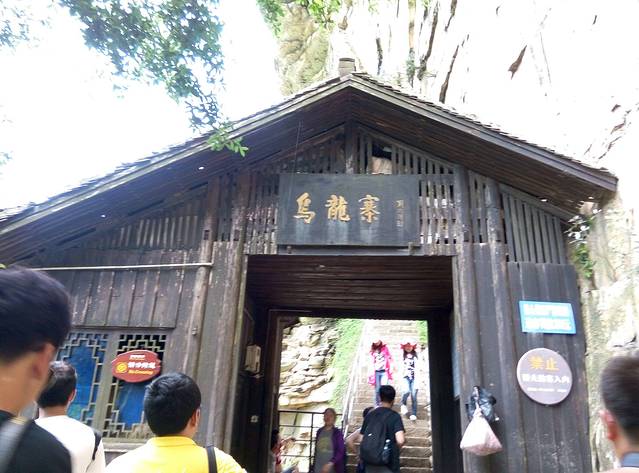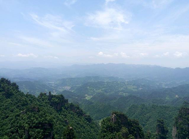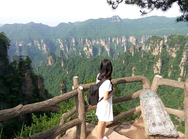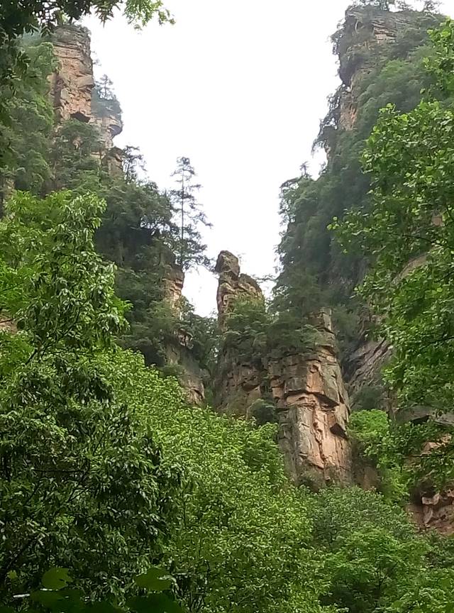 从天子山坐环保车到杨家界乌龙寨大约半个钟左右,不要睡觉呀,以免过站回头噢,我们当时就是过站吵架,嘻嘻。。乌龙寨是以前的土匪窝,上山的路比较抖,且只能一个人过,如果你是胖子能上去也很吃力噢,哈哈,但是熬过来了,到达天波府就会觉得值得的,因为上面风景真的很漂亮,个人认为是整个景区最漂亮没有之一。建议女生别穿裙子会走光,我当时犹豫了很久才爬上去的,哈哈,我打底裤比较长。但爬上去这小山顶真不容易,本来有木索道可以少辛苦点,可是现在禁止通行啦!得下铁梯再上铁梯爬,梯子很陡都不敢往下看。