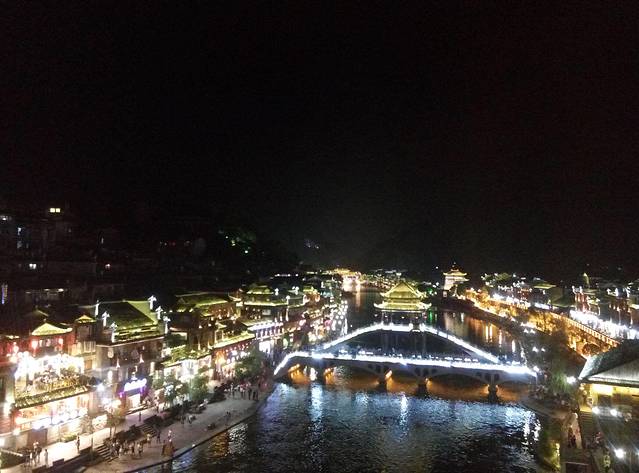 张家界到凤凰古城大约3个半小时,我们是冲着凤凰古城的夜景而来的,住古城内,因为今年4月份开始凤凰古城就开放不收门票啦。。但古城的停车费比较贵一个晚上就50元!从南华门进去过桥左转就是停车场,美景都在沱江两侧,凤凰古城的夜景一点都不逊色于丽江。凤凰古城客栈最具特色的是吊脚楼,一般价格180元左右,其他客栈平日价格都不会很贵,而且100+元都有很多选择,我们住跳岩岸上老营哨街的主题房客栈,个人觉得沿沱江两侧南华路与虹桥之间的客栈观景很不错。。