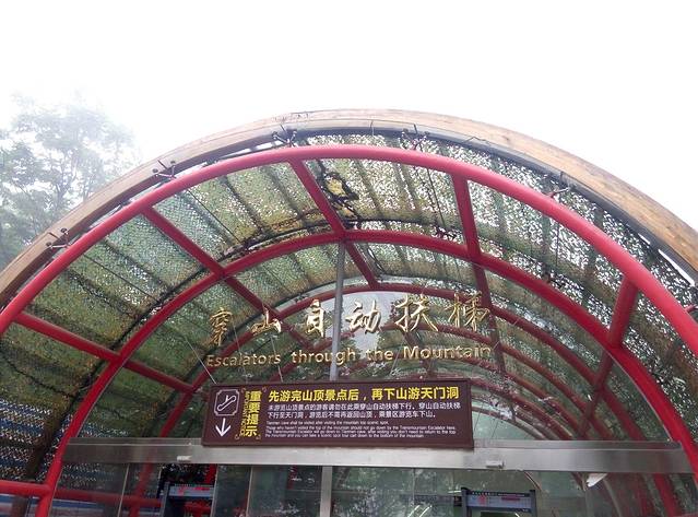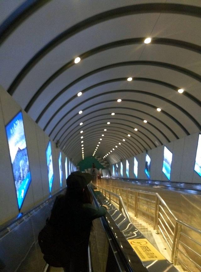穿山电梯全程在山体隧道中运行,从天门洞底直达山顶,共12段,扶梯梯级运行总长度为897米,所以穿山电梯也是天门山不可缺一的招牌。