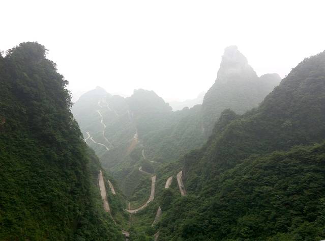 通天大道共计99道弯,暗合了“天有九重,云有九霄”之意。全长10公里多,海拔从200米,上升到1200多米。弯道多处有180度的急转弯回廊盘绕!有“天下公路第一奇观”之称,被公认为“全国十大盘山公路之首”。我们居然坐女司机的车下山,哎呀,担心!但很快就觉得踏实,人家女司机技术一级棒,一路下山都能安心赏沿途风景。