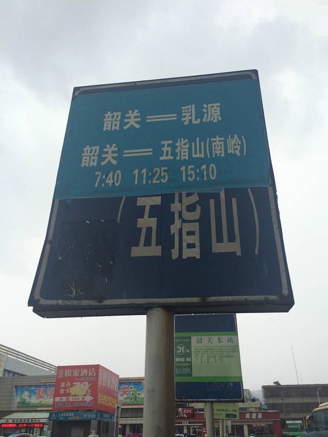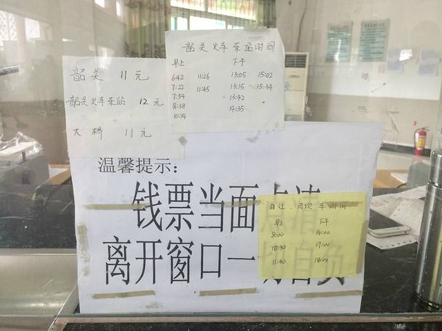 为了赶上韶关东站去乳源的末班车,13点多就下山拿行李往回赶,扬手即停、上车买票,这里的车差不多都是这样。韶关东到乳源末班车是17:40,西站末班车是19点正,西站发车频密,东站几乎是大半小时才等到一辆车,人也特多,坐满站满。韶关东站汽车站里是没有车去乳源的,不用去站里买票,直接在韶关东火车站广场上车就行,去丹霞山的也一样。