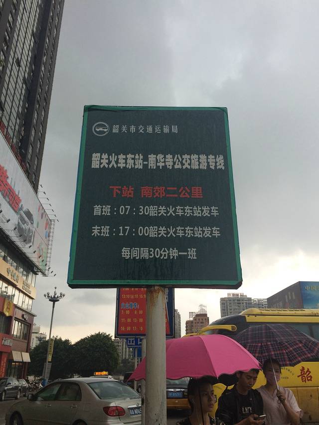 10点半左右到达韶关东,出站后直奔火车站门外的广场,那里停了几趟巴士,丹霞山旅游专线、到乳源县城的中巴、南华寺(松山职业技术学院)线等等,到丹霞山旅游专线到晚上7、8点都有车,而且发车时间也挺频密的,从丹霞山回来也一样。