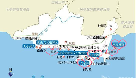 大小洞天和天涯海角南山寺都在三亚湾以西。