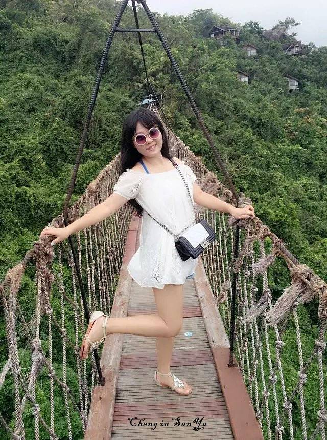 拍非诚勿扰的地方,走了吊桥,滑了索道,电影海报上只两个人,我身后的一群人,冷不峻地想,这桥扎实不 好在早上下了一场雨,气温降下来,夏天的三亚也真的是热!