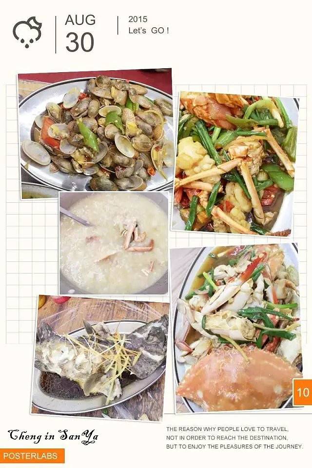 有了前两次的经验,我们在美团上订了位置,加工费买80抵100元。碰到拉客的人,我们都会说:不好意思我们已经定好了。最后一天吃的“林姐香味海鲜加工店”,还送椰子饭。琵琶虾,大海蟹,圣子,扇贝,鲍鱼,海胆,加工费打完折才58元。加上海鲜一共270元。