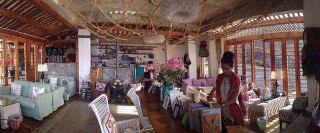 这家客栈前面设计了一个类似于储水池的台面,其实走下去是一段环海公路,再前面才是海,而这样巧妙的设计是不是有海天一线的感觉,中间的沙发是凹下去的,当你置身其中简直太!美!了!!!。。。