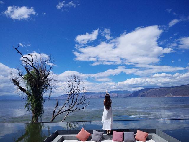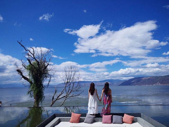 来之前在网上做了攻略,发现双廊跟洱海很近,所以我们在双廊住了一晚就去洱海了,第二晚入住洱海的無舍客栈,880元/晚,重点说下这家客栈很难定到房,到下半年旺季就更加难定,我是提前半个月通过公众微信平台预定的,而且又是两个不同的房型,标间还是让给朋友,我跟十五住大床房,结果一去发现我们这个房型更加有利于观海,当时不禁想偷笑