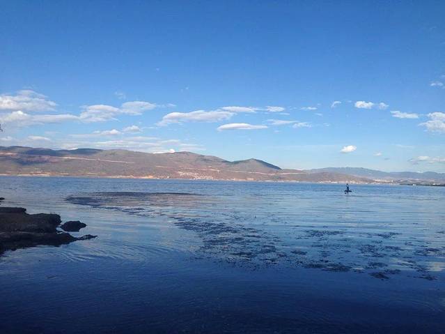 逛古城的时候“勾搭”上2名男同胞 开玩笑啦,其实是他们问要不要一起去环洱海,我们随即就答应了,忘了告诉大家,如果去洱海,一定要租辆电瓶车环海,一圈大概130公里,所以我们是骑到一段路就折回来了,据说长期住在大理的游客,他们每天下午都要去环一趟洱海。