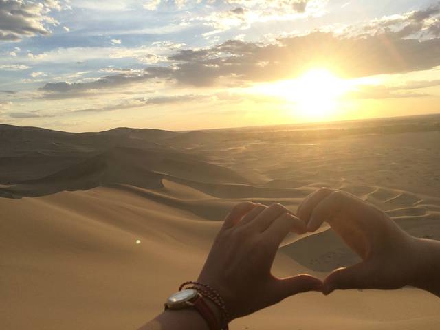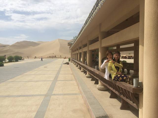 从沙漠看完日出回来,洗洗身上的沙子,下一站就是不远处的莫高窟。莫高窟共700多窟,旺季只8窟供开放游览,淡季12窟。除了千年遗址,展厅的球形影幕也是非常给力的。今后开放的洞窟也将减少,趋势也是逐渐电子化展示了。因此更要早点来看看啦。此处内容不太适合用照片展示。下午休息之后天气稍稍凉爽一点,于是移步鸣沙山月牙泉景区。景区门口也可以录入指纹,三天之内可以再次进入。