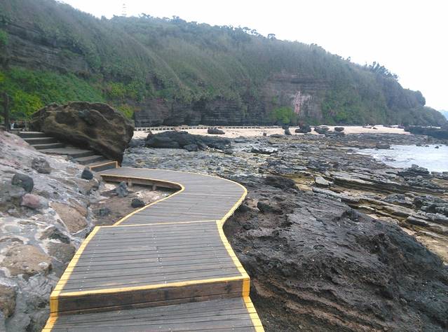 鲤鱼山公园内,沿着崎岖山路一路向下,直达海边。