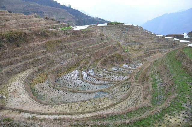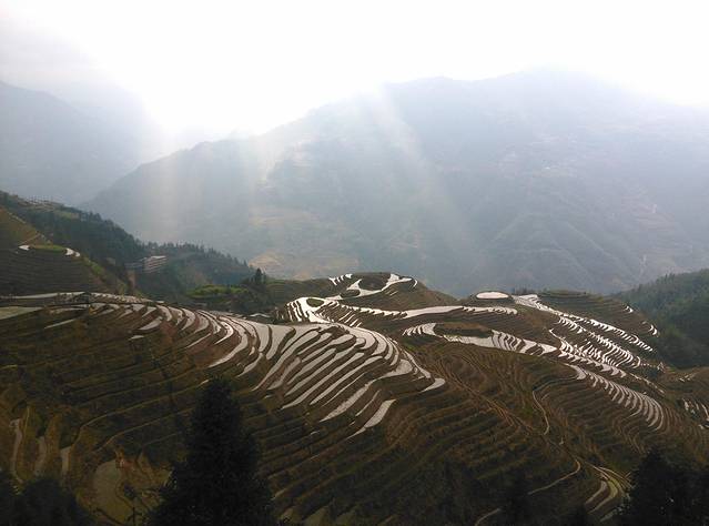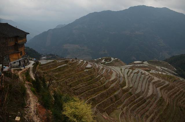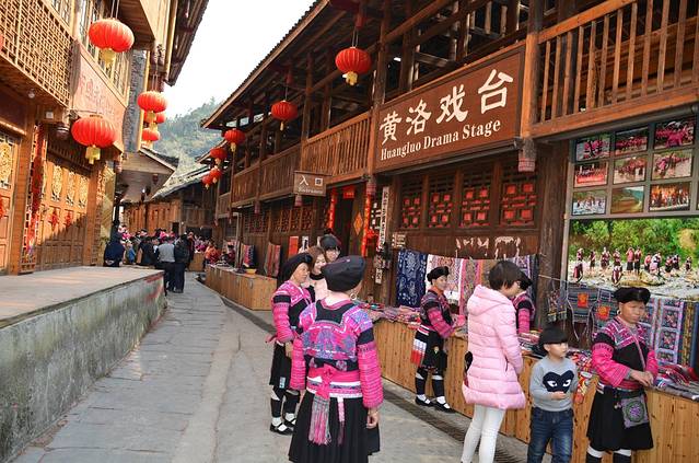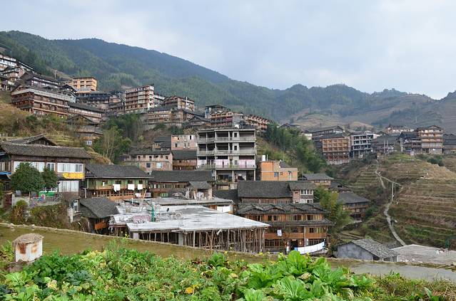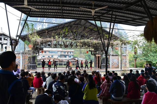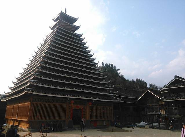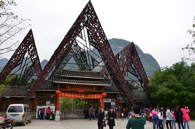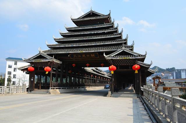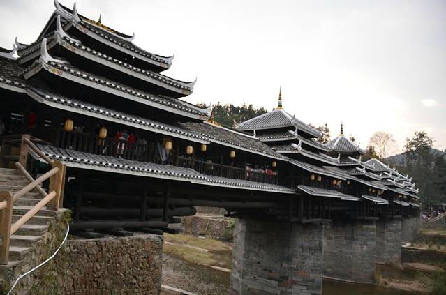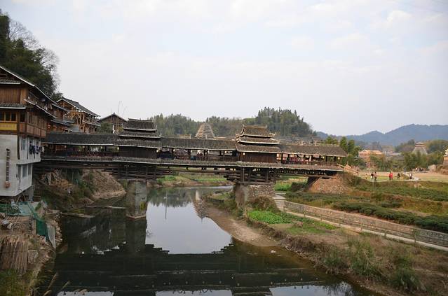 将近下午4时抵达程阳八寨。门票:80元/人。程阳八寨有八个自然村屯,分别是马安、平寨、岩寨、平坦、懂寨、程阳大寨、平埔、吉昌等八个自然村寨,俗称"程阳八寨",面积12.55平方公里,有"百节之乡"的美誉。侗族建筑极具特色。其中程阳风雨桥最为出名,始建于1912年,是目前世界上规模最大的风雨桥。有幸看到壮观的百人表演纺织舞、欣赏到犹如天籁之间的侗族大歌。美中不足的是,风景区可能因为是人们生活的地方,基本没有规划,每一幢民族建筑都堪称艺术精品,但是现代建筑混杂其中,路上停满了摩托车、小汽车。影响了游玩兴致。春节期间游客众多,通往各个村寨的路上尘土飞扬。