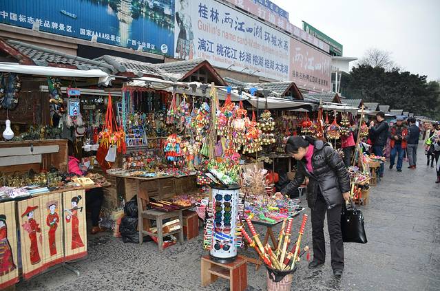 下午5点钟,抵达网上预订好的酒店。来自东北的老板娘热情地准备了阳朔特产——金桔招待我们。由于老板娘的乌龙,订好票的印象刘三姐与我们擦肩而过(年初三才有演出)。于是将年初一的夜晚留给西街。在水泄不通的西街匆匆遛了一圈,在西街口吃了一餐超贵的啤酒鱼后(190元/每斤,后来发现一个奇怪的现象,阳朔的啤酒鱼几乎全都是2.8斤),回客栈休息。客栈环境还不错,435元的大套间,四张1.5米大床,5个人住刚刚好。