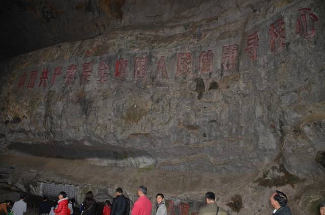 七星岩入口,充满政治色彩的口号保留着那个时代的印迹。