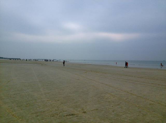 早上,吃一碗北海牛腩粉,赶往银滩。北海银滩位于广西北海市银海区,东西绵延约24公里,海滩宽度在30--3000米之间,以其"滩长平、沙细白、水温净、浪柔软、无鲨鱼"等特点,而被称为"中国第一滩"。虽然自己去过的海滩也不少,但看到银滩,还是觉得非常惊艳,“中国第一滩”实至名归。沙滩非常平缓,沙子非常细腻,可惜大风刚过,天气阴沉,无法完全领略泛着银光的银滩的迷人风采。如果是晴朗的夏天,带孩子来游泳玩沙,绝对是一流,各种水上游乐项目也很多。免费的景点总能让人留下更为美好的印象,更何况是这么美丽的地方。银滩面积非常大,共分为三个景点,由于我们时间有限,只能开着车,走走停停,走马观花地领略了一下银滩的美。