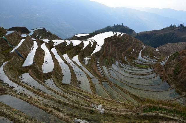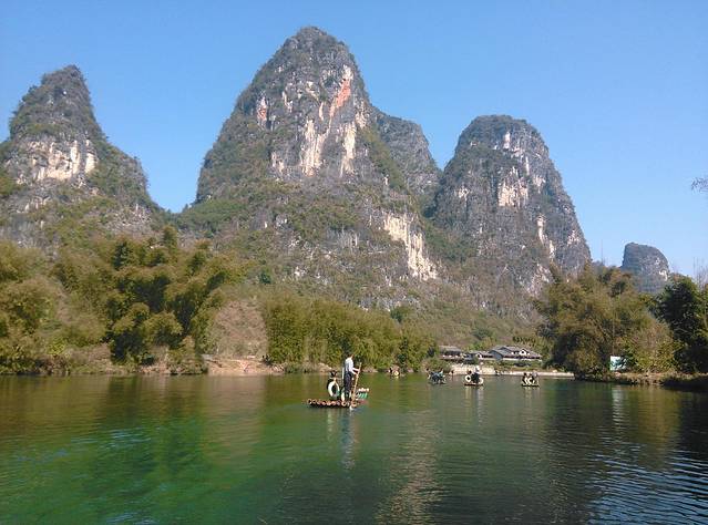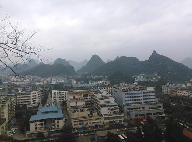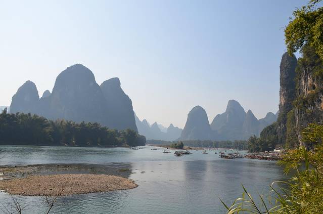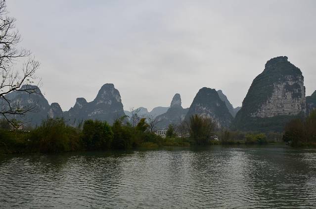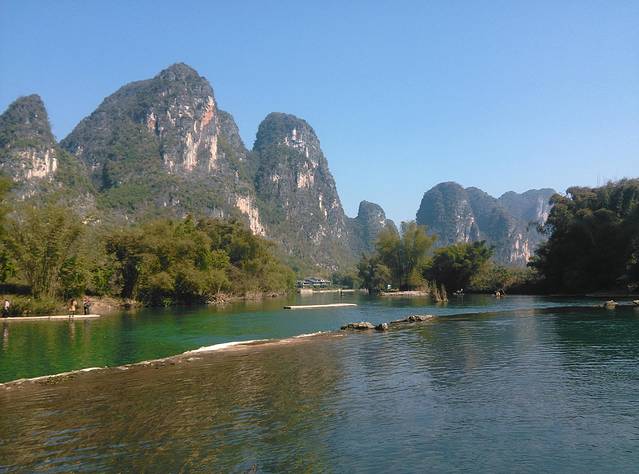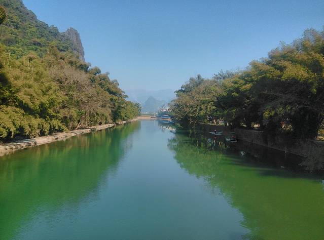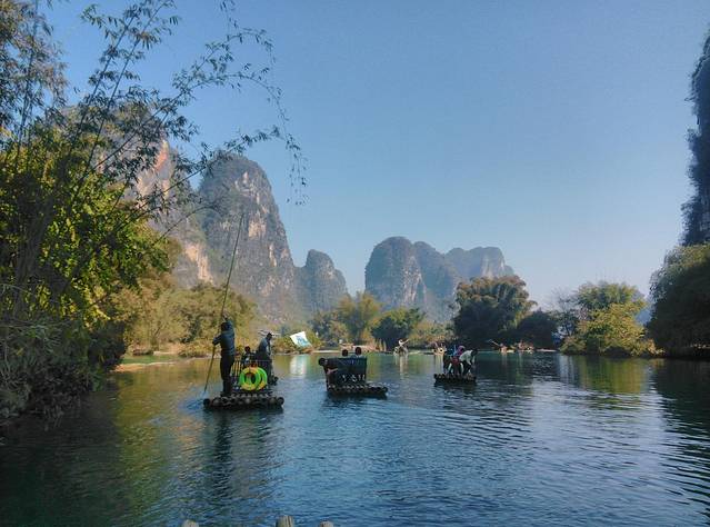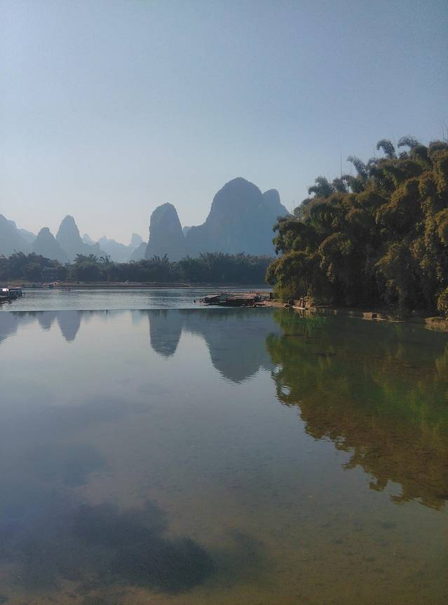 终于开始体验节假日的拥堵模式,去花海的道路成了停车场。花了差不多2个钟,好不容易挤到了仙女湖,不过一水库而已,且是冬天基本没什么景色可看,旁边的花海根本无法进去。路边远眺了一番,就蜗行着离开了。简单午餐后,向阳朔进发,一路青山秀水,美不胜收。可惜司机不能拍照,只能将美景留在记忆里。