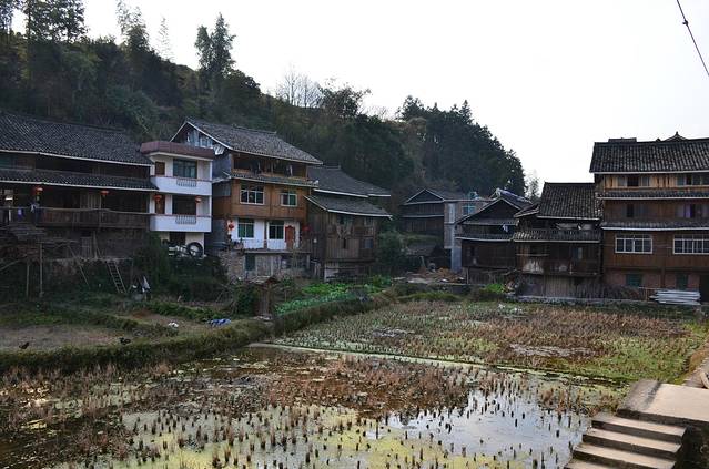 散落在四田间的侗族民居,都很漂亮,中间那座现代建筑真煞风景。