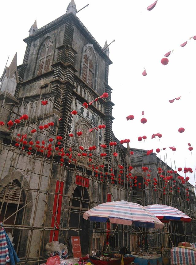 教堂正门正在施工,只能是这样的。不过正门也没什么可看的,密密麻麻摆了各种商贩的摊位。