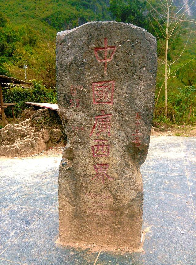 53号界碑,为1896年清政府所立。界碑虽经多年风蚕雨蚀,历经沧桑,但"中国广西界"五字的刻纹仍工整有力,清晰可辨。