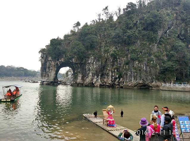 一大早,直奔象鼻山。将车停在大瀑布酒店停车场是一件非常明智的选择,穿过杉湖去象鼻山。滨江路上车早已排起了长龙,象鼻山前根本无处停车。