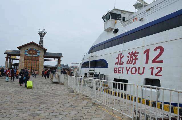 从北海到涠洲岛每天往返都是三班船。我们定了中午11:30北海至涠洲岛。船票+上岛门票:大人428元每人,小孩子230元每人。由于老人家要在北海市区追寻当年的回忆,所以我们一家三口赶往北海国际客运港。乘坐北海12号游轮前往涠洲岛。全程约150分钟抵达涠洲岛客运码头。时间仓促,午饭只能在船上吃泡面,孩子就非常高兴。
