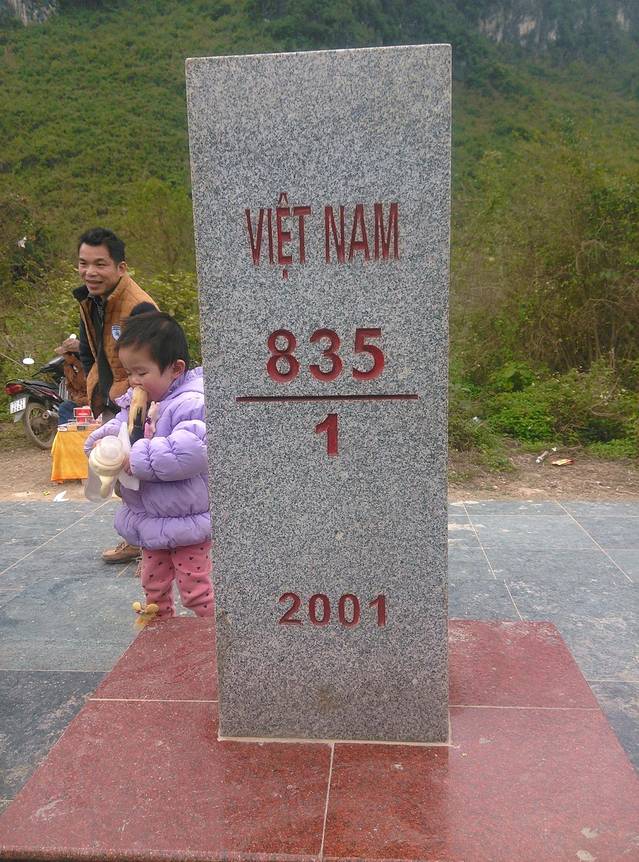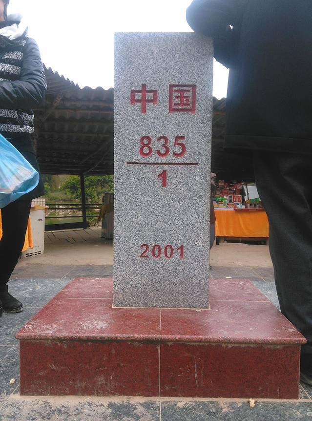 中国一面的835号界碑。绕着这个界碑转一圈,就是出国一次了。许多小孩子兴奋地围着界碑转圈玩。
