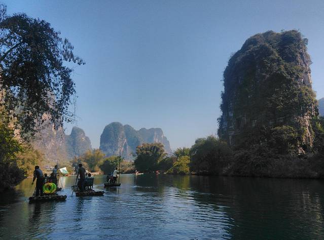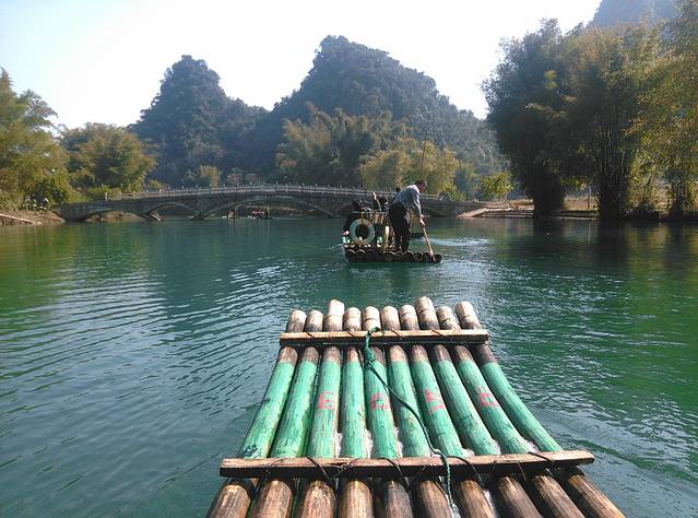 经不住路边妇人拉拢,上演一处《遇龙河受骗记》。辗转半个钟,250元一个双人筏,半小时完成介绍中一个多小时的漂流游。筏工满腹牢骚,抱怨政府统一管理景点、禁止拉私活,导致他们收入下降;码头管理人员态度极为恶劣。虽然遇龙河的风景美丽,但体验着暴戾的民风、匪气的管理、缩水的行程,遇龙河,想说爱你不容易啊!