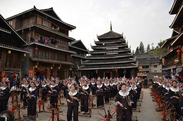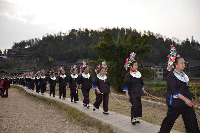 非常庆幸欣赏到这壮观的侗族表演——纺织舞。