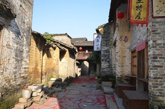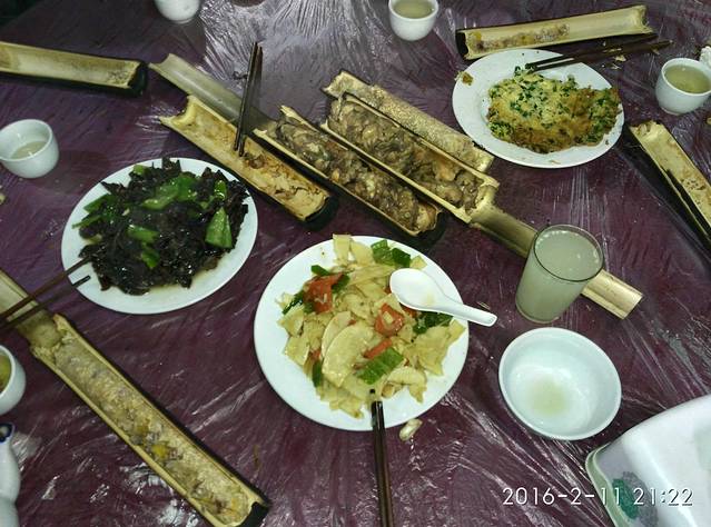 除夕的夕阳映衬下,品尝着黄姚的特色美食,远处青山如黛,眼前青砖碧瓦,第一次异地的年夜饭,别有一番滋味。其实的黄姚的饮食很简单,由于临桌的游客对蒸鸡和米粉肉反映不佳,所以没点,可惜久负胜名的田螺酿缺货,豆腐酿、大红扣、鱼干味道都不错,农家自种的青菜非常受欢迎。200大洋不用,经济实惠。
