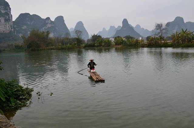 从兴坪到九马画山,是漓江游的精华所在。可惜筏工百问不答,印象中的螺丝山、海豚峰、二十元人民币背景,僧尼相会、七仙女下凡等只能自己找了。最令人无语的是,船将到九马画山时,惜语如金的筏工指着前方,告诉我们“前面就是九马画山”。然后直接掉头返程了。