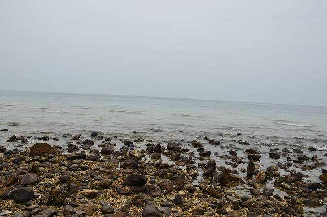 贝壳沙滩的这片石头滩,孩子在这里捡了许多五彩缤纷的贝壳,玩得不亦乐乎,玩了差不多2个钟。