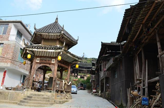这私漂亮的民族建筑就让这边的洋楼,路边的汽车给破坏了。