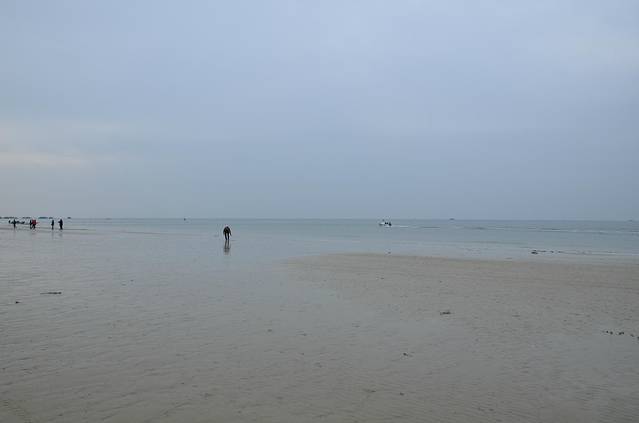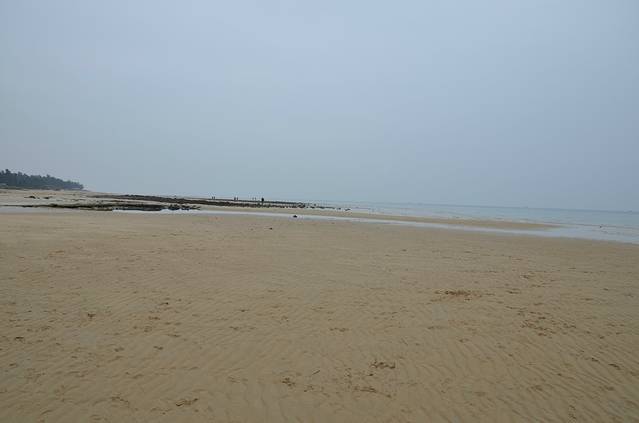 平坦细腻的沙滩。可惜天气不好,不然肯定更加美。