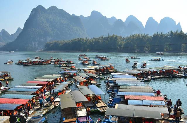 贺州到阳朔,130公里,高速一路畅通无阻,下午2点钟下高速,十里画廊就是一个大型露天停车场,堵得水泄不通。十里画廊的其他美景早已经领略过,看这场面,实在晕人,只好放弃。